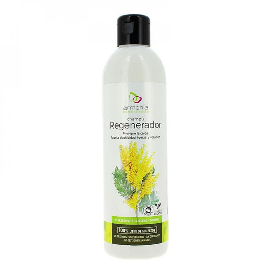 Champú regenerador sin sulfatos, con extracto de mimosa y ginseng. Limpia suavemente el cabello sin...