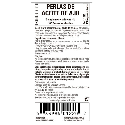 SOLGAR Perlas de Aceite de Ajo 100 cápsulas blandas