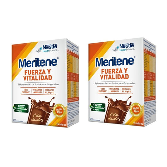 PACK ESPECIAL MERITENE Fuerza y Vitalidad Batido Chocolate 30 sobres (2x15) Suplemento Nutricional sabor Chocolate...