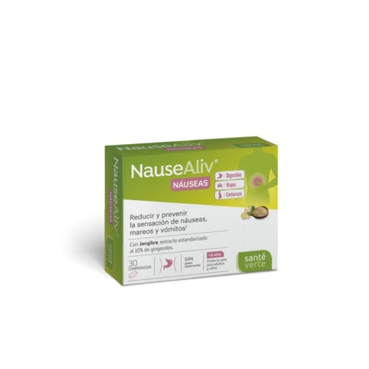 Descubre Nausealiv de Santé Verte, un suplemento en cápsulas con extracto de jengibre que alivia...