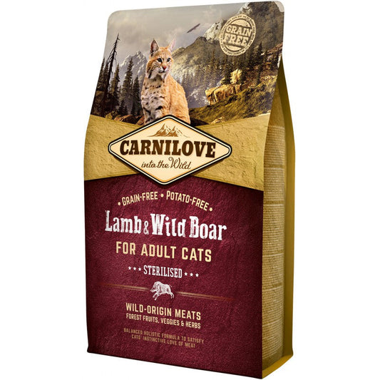 Carnilove Feline Adult Sterilised Cordero Jabali es un alimento seco premium diseñado específicamente para gatos...