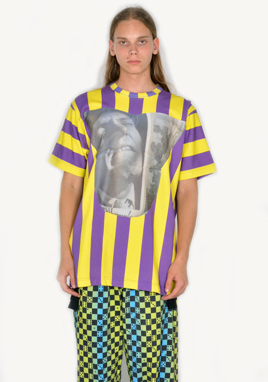 BERNHARD WILLHELM A23_C47+P2 STRIPE WOVEN T-SHIRT PURPLE/YELLOW