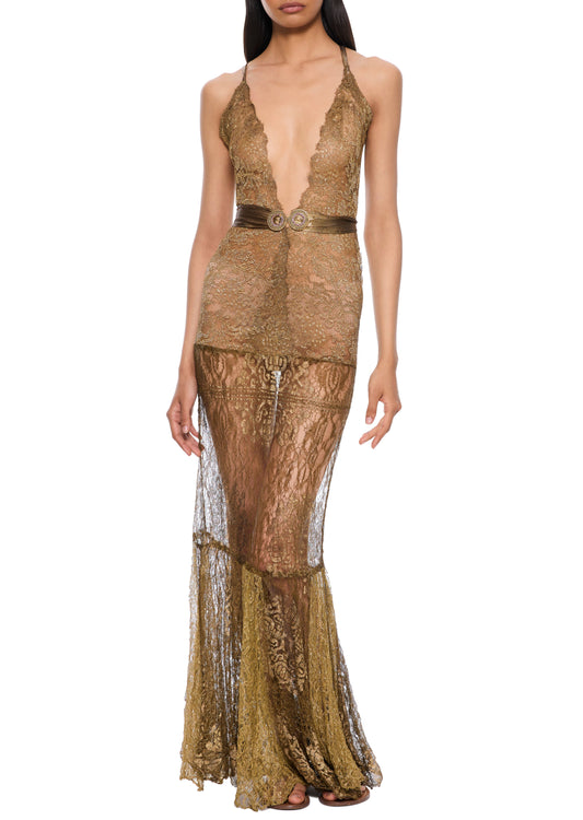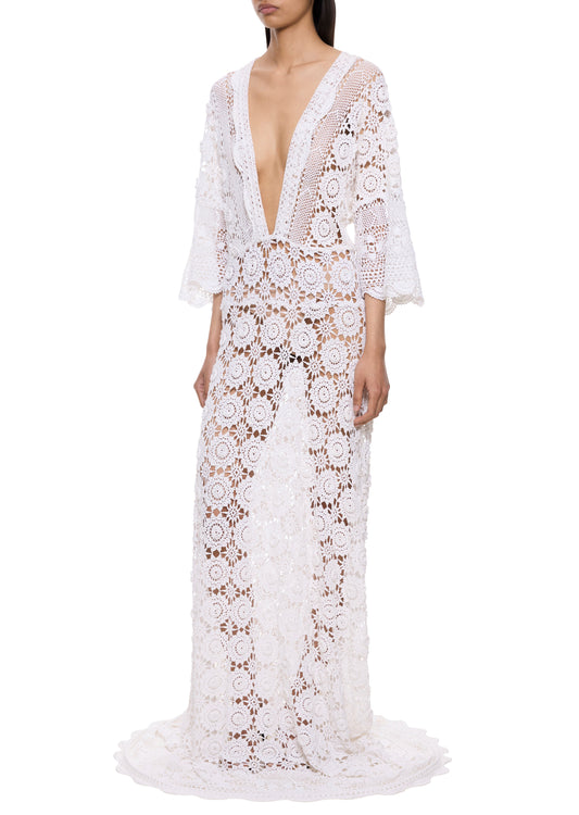 1920s Ivory Handmade Lace Gown with Puffball Sleeves