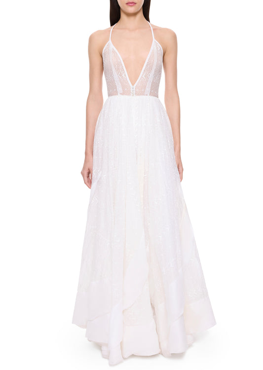 1940s Floral Appliquéd Gown with Sheer Overlay