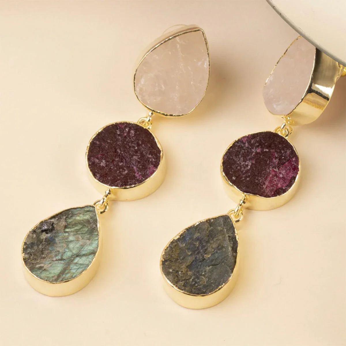 Pendientes Mademoiselle Ed. Limitada Rough Rosa Cuarzo, Rubí y Labradorita