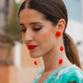 Pendientes Rociera 3 Flores Rojo
