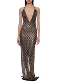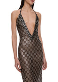 1920s Black and Silver Check Egyptian Gown