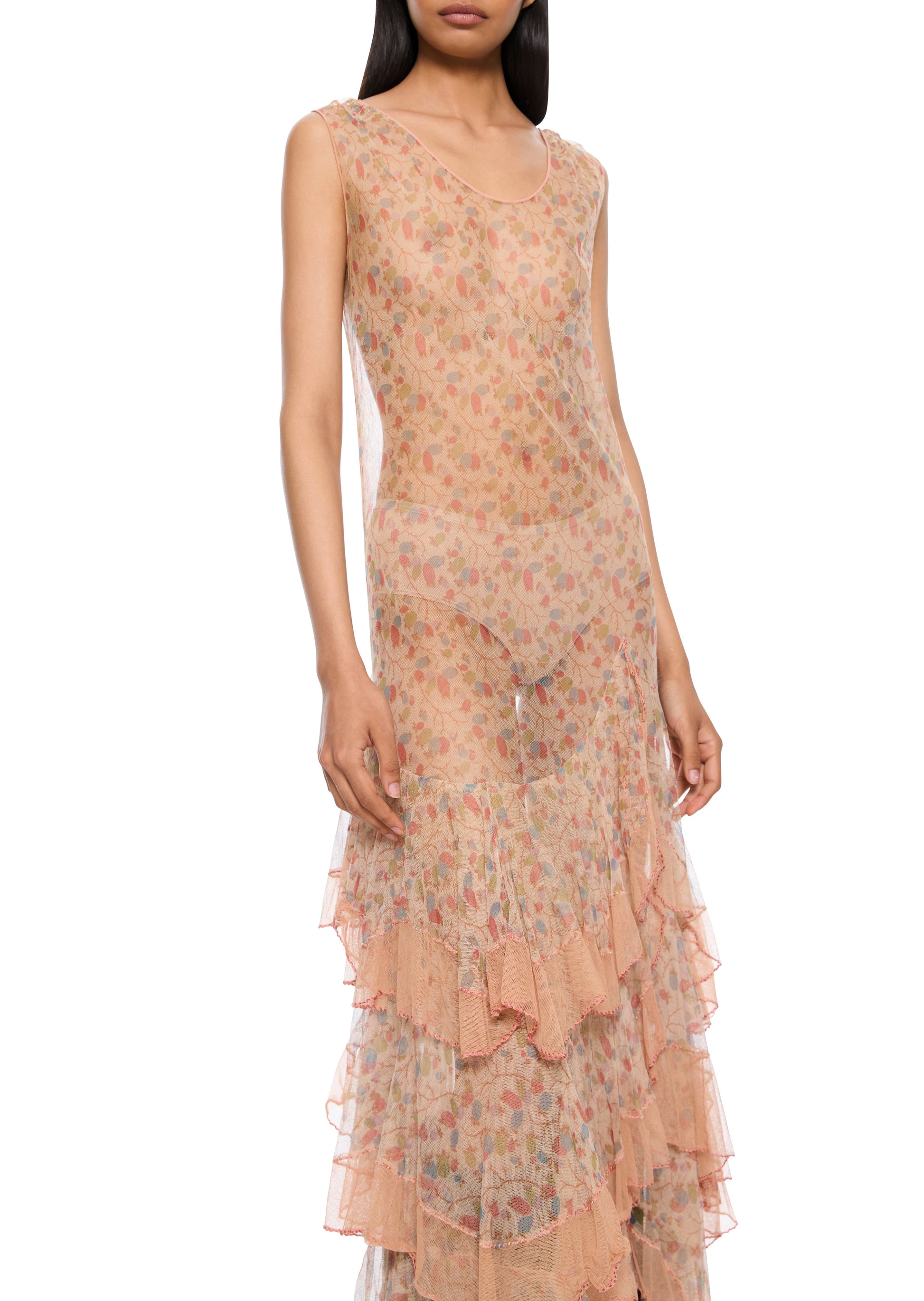1930s Floral Peach Shift Dress