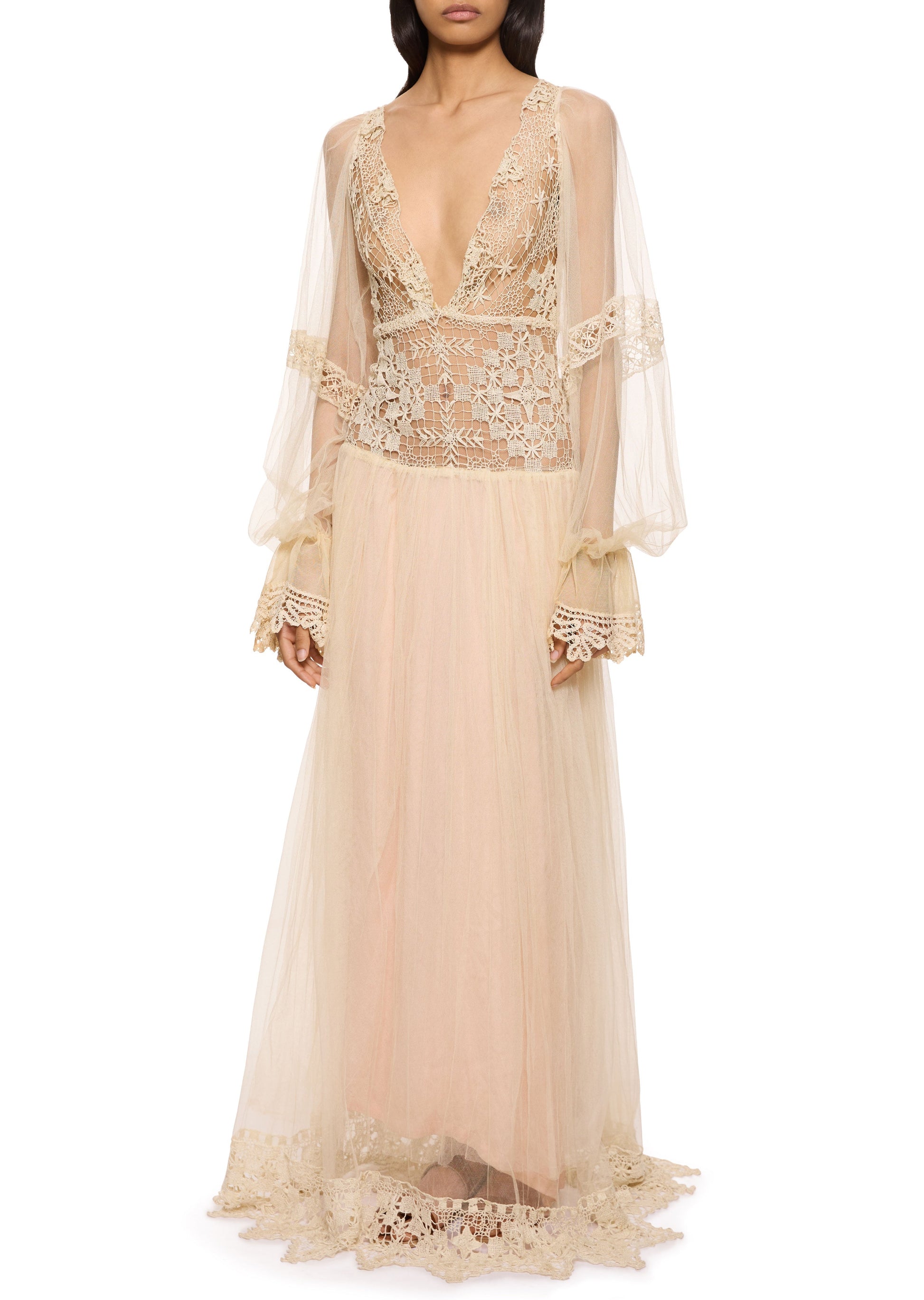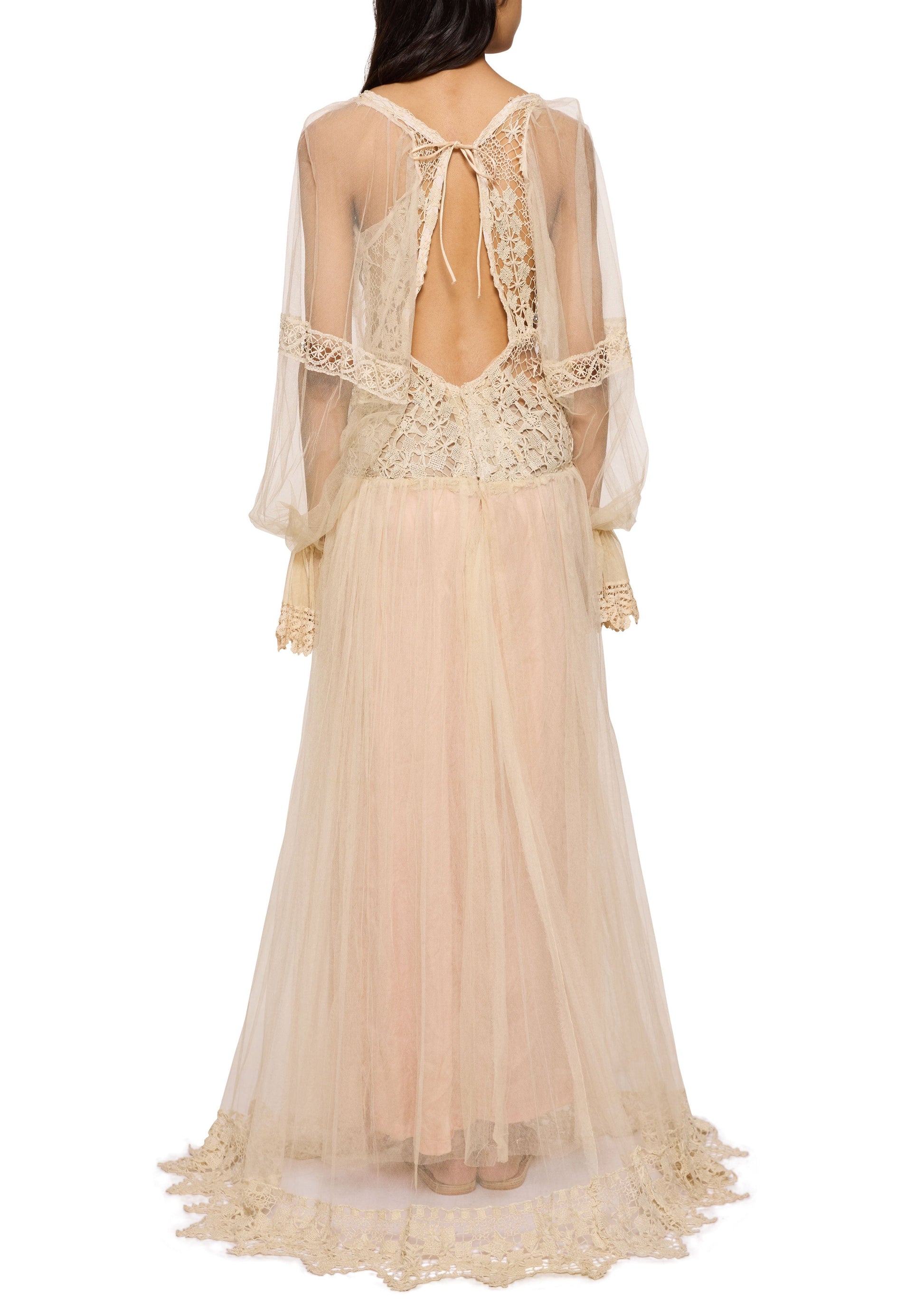 1930s Ivory Hand Crochet and Tulle Gown with Blush Under Skirt