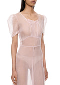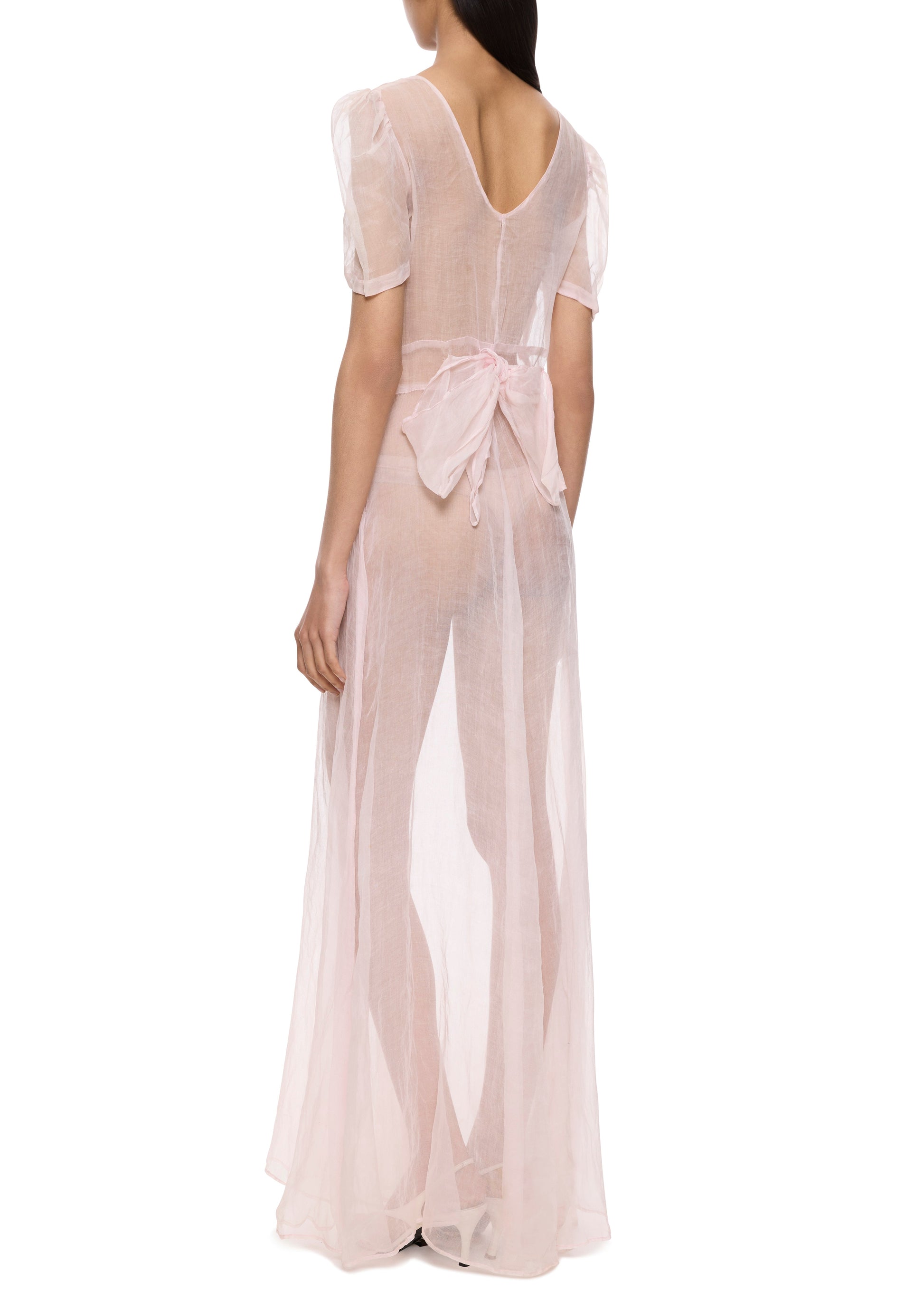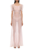1930s Sheer Pink Chiffon Gown with Puffed Sleeves