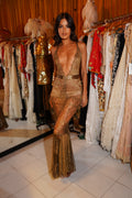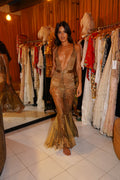 1920s Gold Metallic Lace Dress