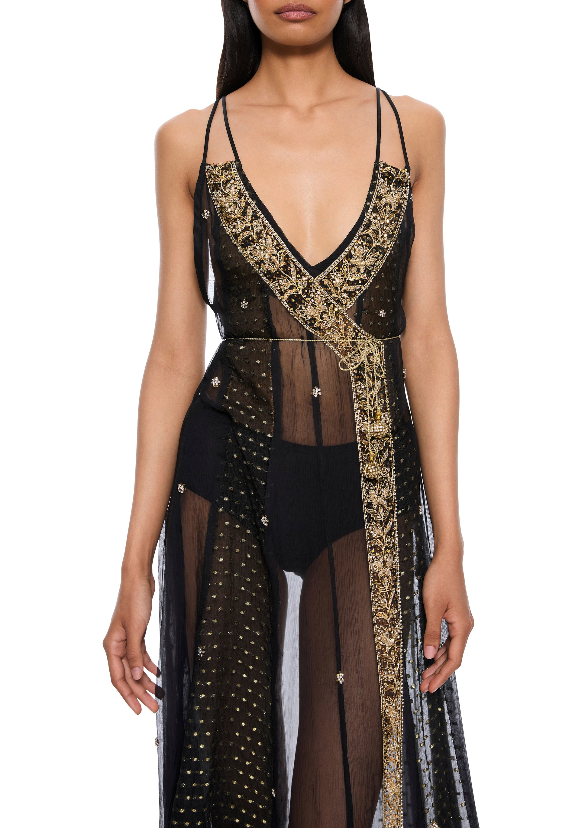 1970s Navy & Gold Sheer Gown