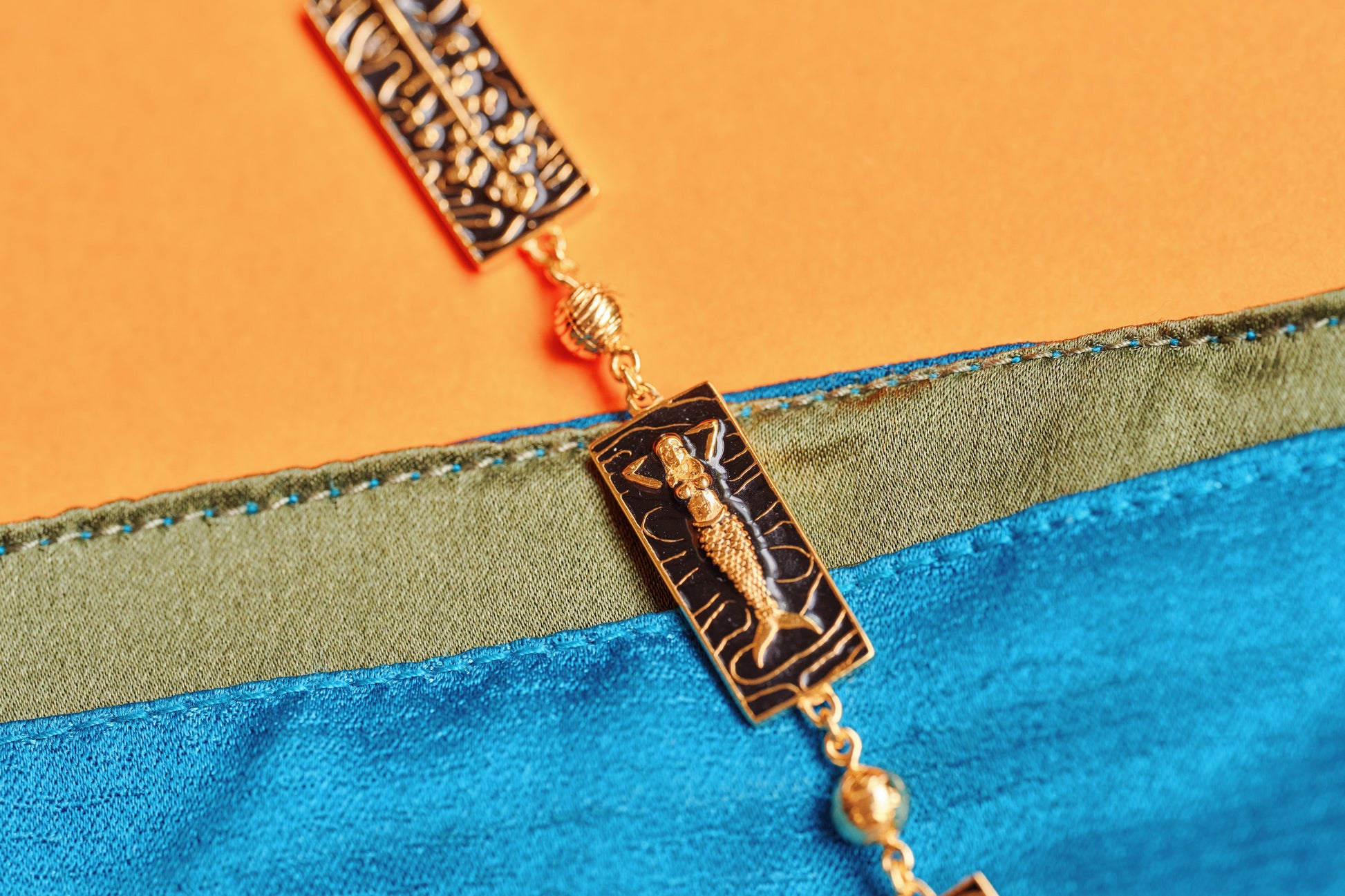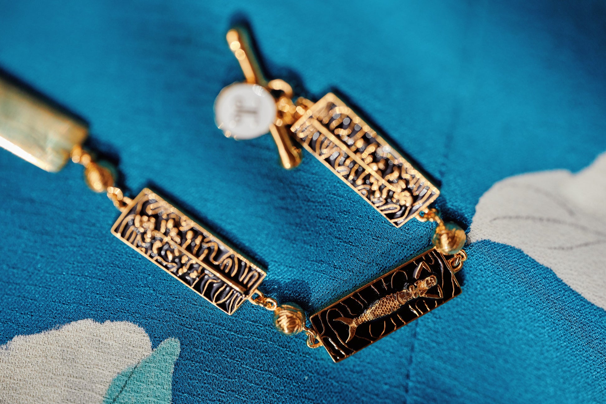 Cactus Flower & Mermaid Black Enamel Bracelet