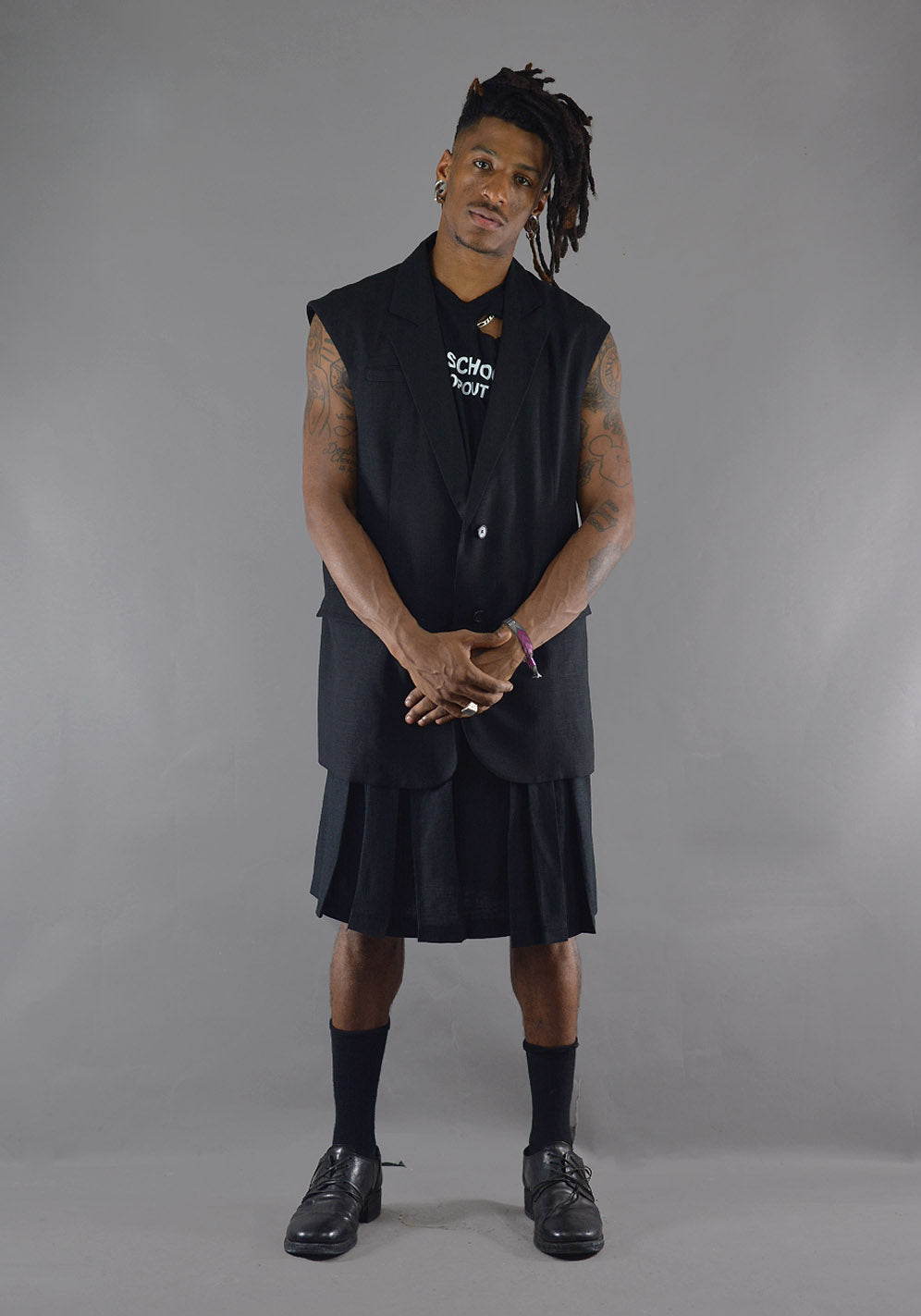 ART SCHOOL MSKRT005 PLEATED SCHOOL SKIRT BLACK