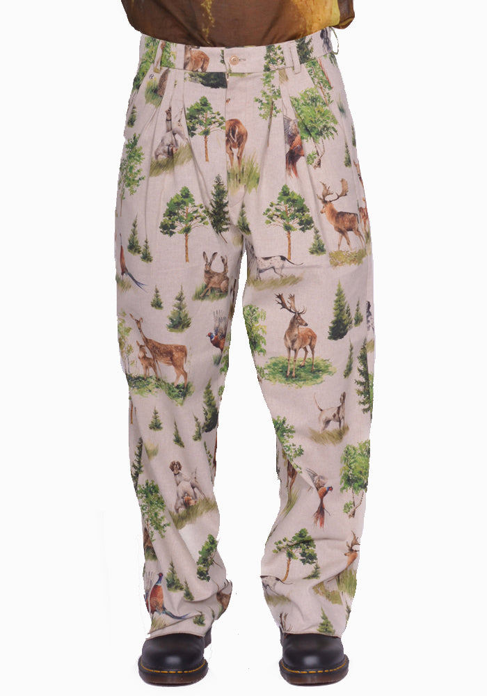 BLESS N°74 3040 ULTRA WIDE PLEATED TROUSERS FOREST ANIMALS