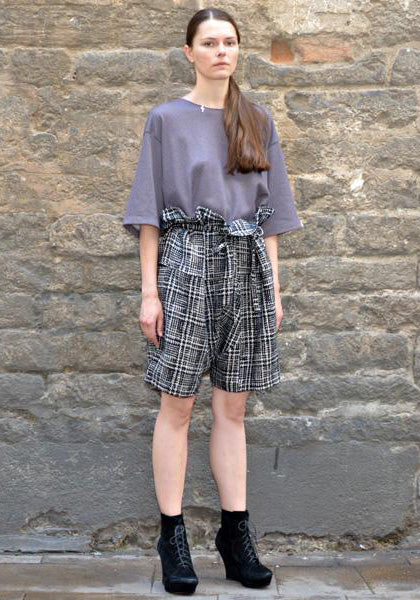 BLESS NO.59 STONE SHORTS TWEED BLACK/WHITE