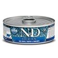 Farmina N&D Cat Ocean is a premium wet food, specially formulated for cats, combining high-quality seafood ingredients: tuna (55%), squid (10%) and shrimp (5%).