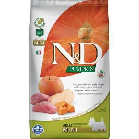 Farmina N&D Wild Boar, Pumpkin and Apple Mini dog food is a complete and nutritious food, ideal to meet the needs of dogs at all life stages.