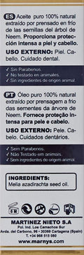 MARNYS Neem Oil: 100% natural, extracted from Melia azadirachta seeds.