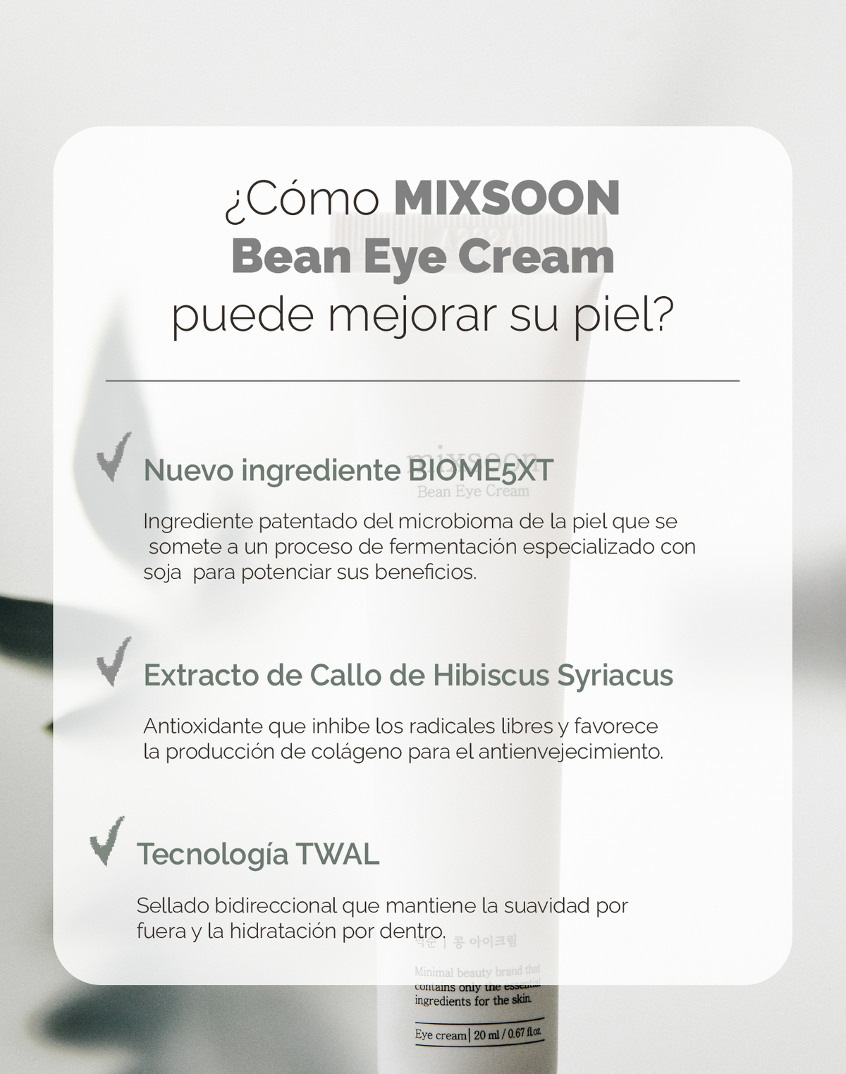 Mixsoon's Bean Moisturizing Eye Cream is a 20ml intensive treatment designed to rejuvenate the delicate skin around the eyes.
