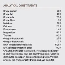 It contains omega 3 and 6 fatty acids to keep skin and coat in optimal condition, plus glucosamine and chondroitin to support joint health.