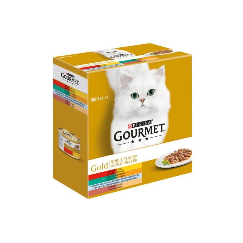 Purina Gourmet Gold Multi Double Pleasure Assortment 8x85g is a wet food designed to satisfy the most demanding palates of cats.
