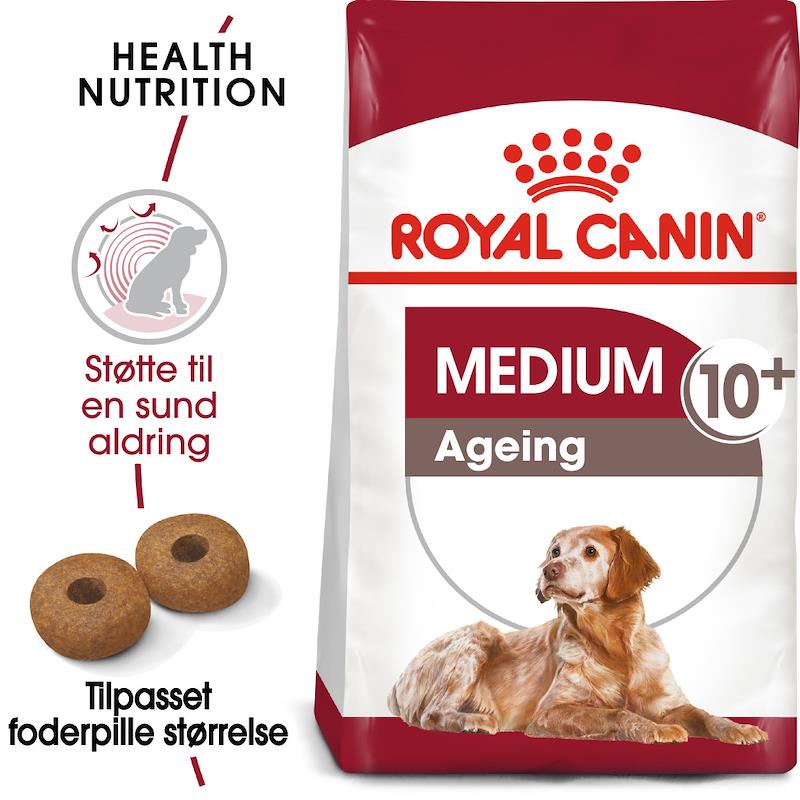 Royal Canin Medium Ageing 10+ is a premium dry food formulated for medium breed dogs (11-25 kg) from 10 years of age.