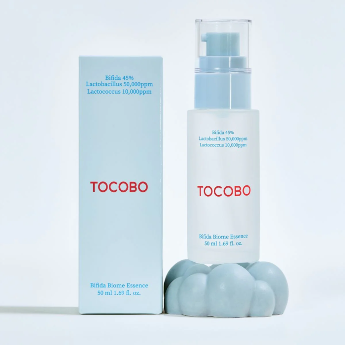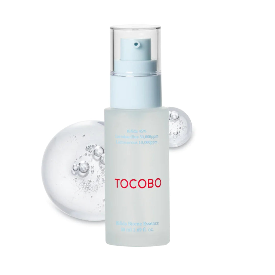 Tocobo Bifida Biome Essence is an innovative 50ml facial essence formulated with probiotics and niacinamide to strengthen the skin barrier.