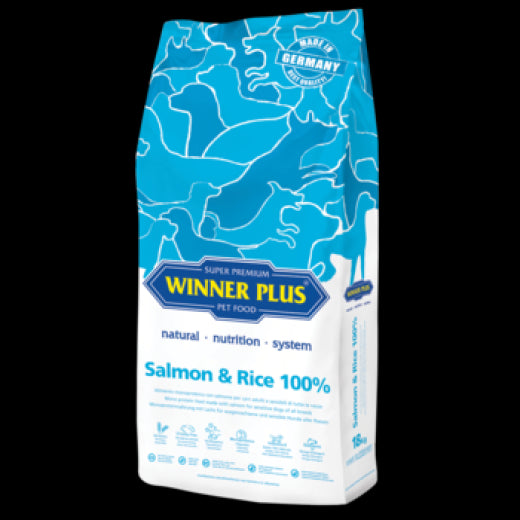 Winner Plus Salmon & Rice is an 18kg hypoallergenic dry food, ideal for adult dogs of all breeds, especially those with food sensitivities.