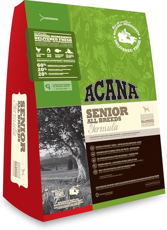 Acana Senior Pienso para Perros de 11,4 Kg es un alimento seco formulado específicamente para perros mayores de 7 años.
