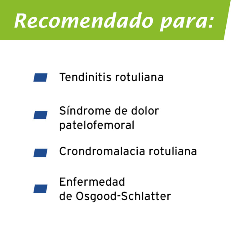 Cincha patelar para un alivio focalizado del dolor al aumentar la presión sobre el tendón rotuliano gracias a su inserto anatomico de alta densidad