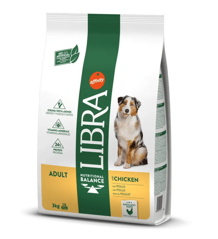 El **Affinity Libra Canine Adult Pollo Pienso 3kg** es el alimento ideal para perros adultos de todas las razas.