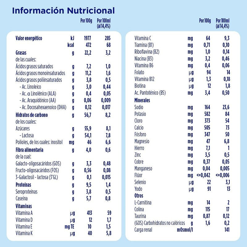 - Leche de Continuación a partir de los 6 meses de tu bebé hasta los 12 meses de edad.