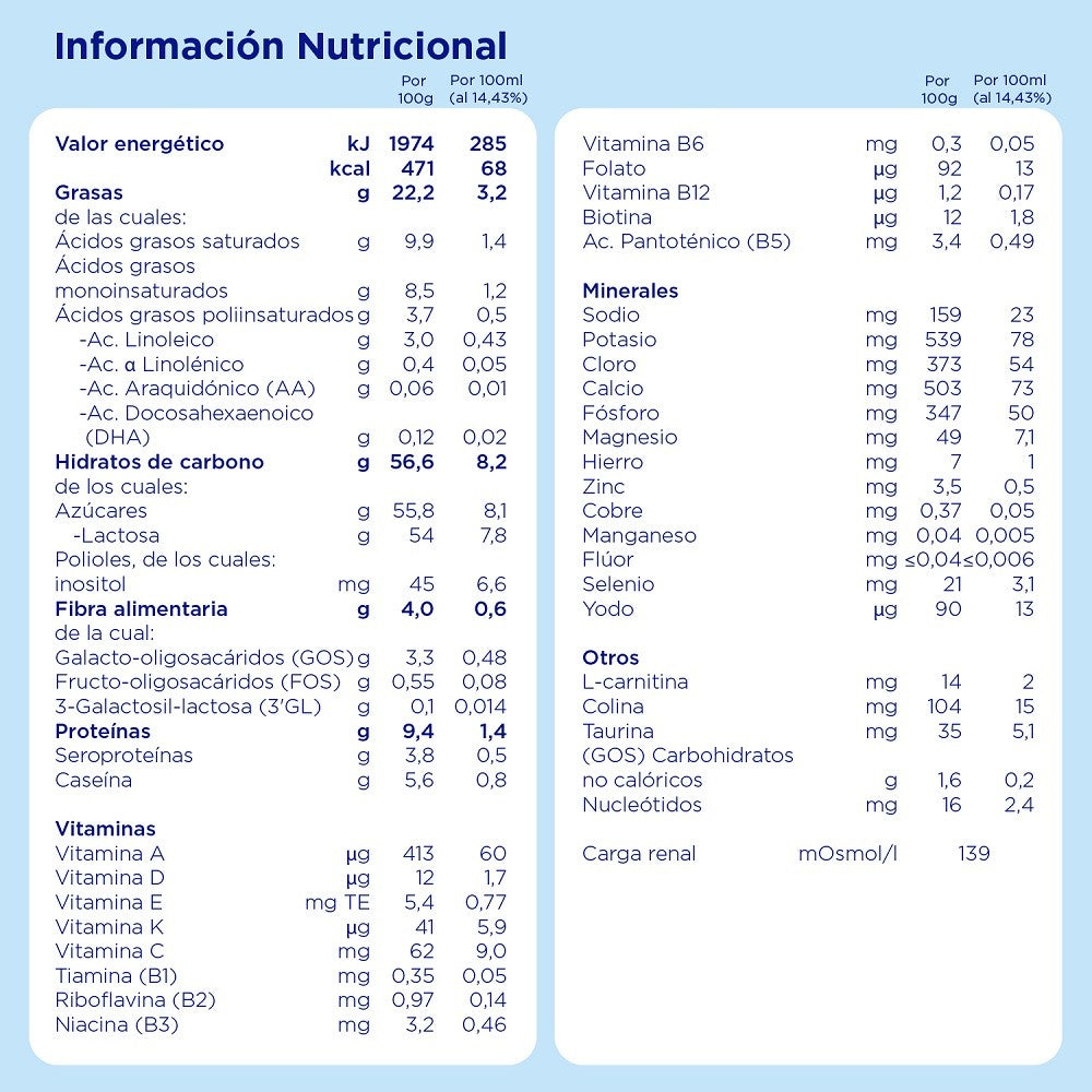 - Con componentes muy similares a los de la Leche Materna.