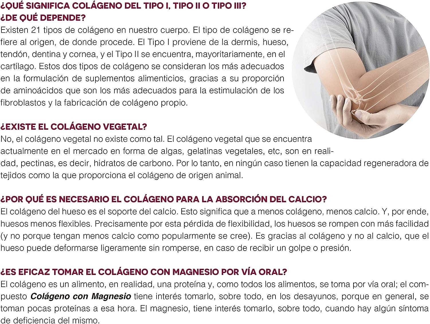 El colágeno con magnesio interviene en la regeneración del tejido osteomuscular. El colágeno con magnesio contribuye a la salud del tejido conectivo como la piel, cabello y uñas.