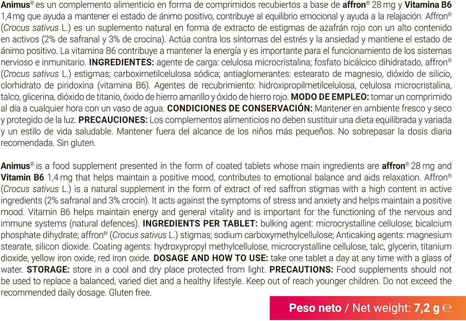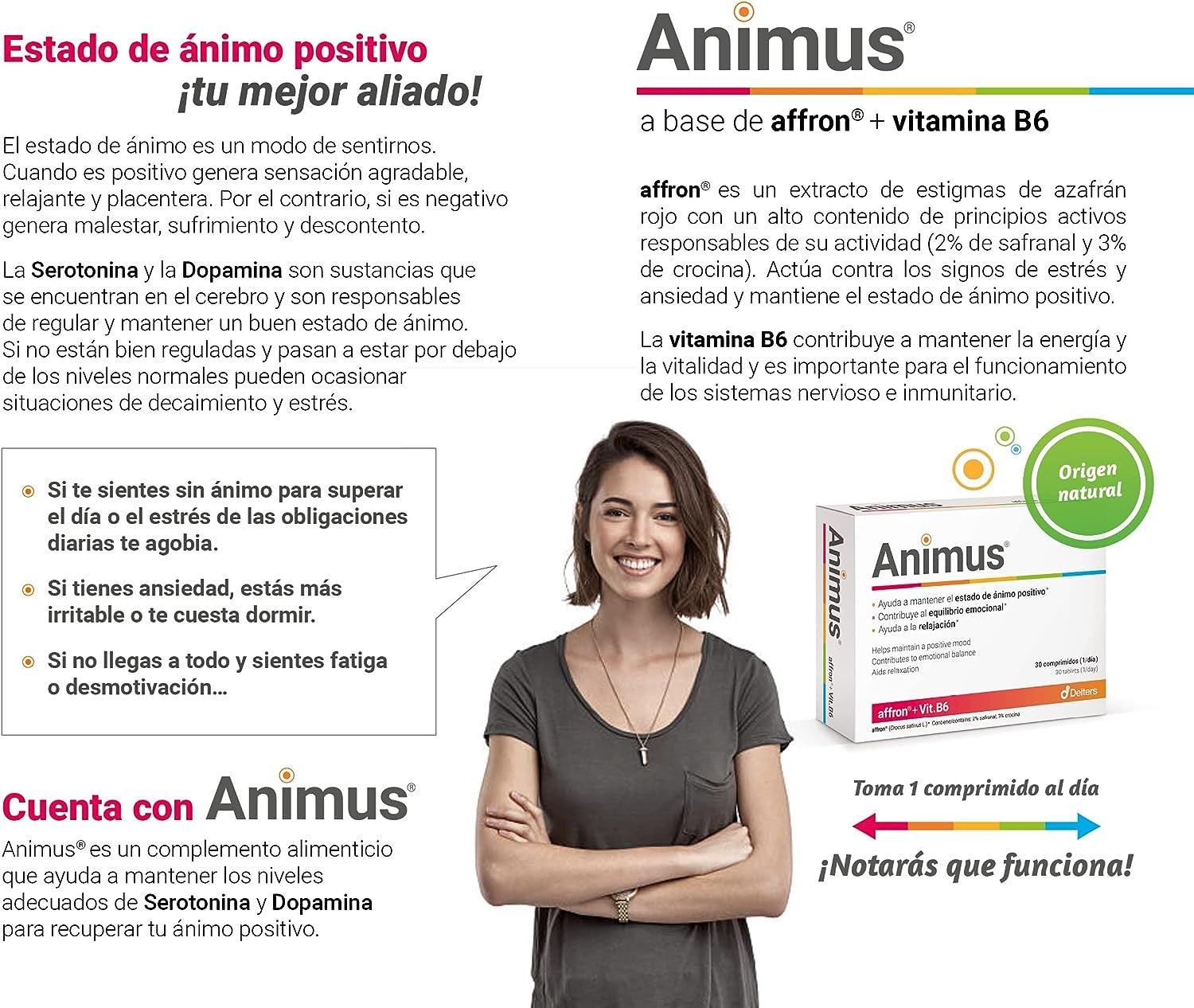 Complemento alimenticio en pastillas para mejorar el estado de ánimo, reducir los niveles de estrés y controlar los síntomas de la ansiedad