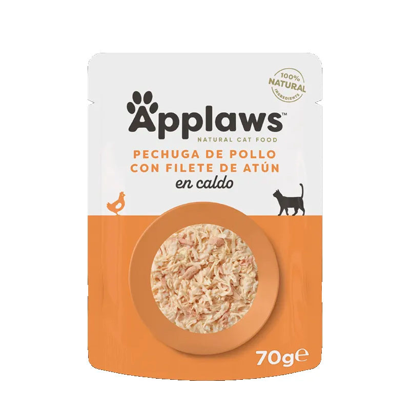 Applaws Cat Pechuga de Pollo y Filete de Atún es un complemento alimenticio 100% natural para gatos adultos.