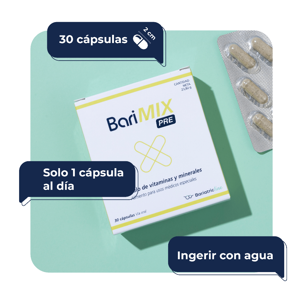 BariMIX Pre es un complemento alimenticio multivitamínico y multimineral, para las personas con deficiencias nutricionales que van a ser intervenidas de cirugía bariátrica.