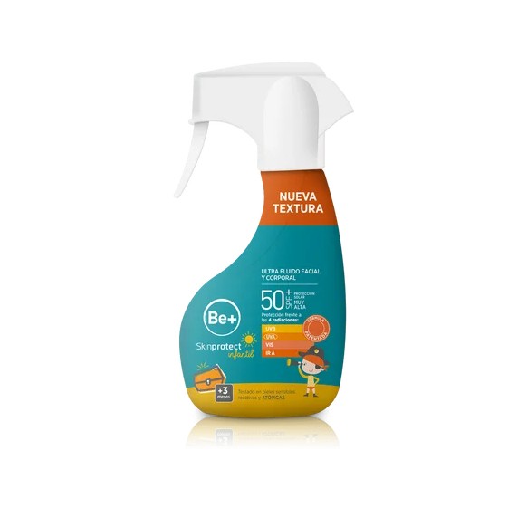 Protege la delicada piel de los niños con Be+ Skinprotect Infantil Ultra Fluido Solar SPF 50+. Fórmula ligera y resistente al agua, ideal para días de playa.