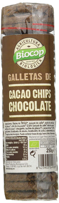 Galleta Cacao con Chips de Chocolate Biocop 250 g, gruesas y crujientes galletas con chips de chocolate. Con ingredientes que provienen del cultivo ecológico.