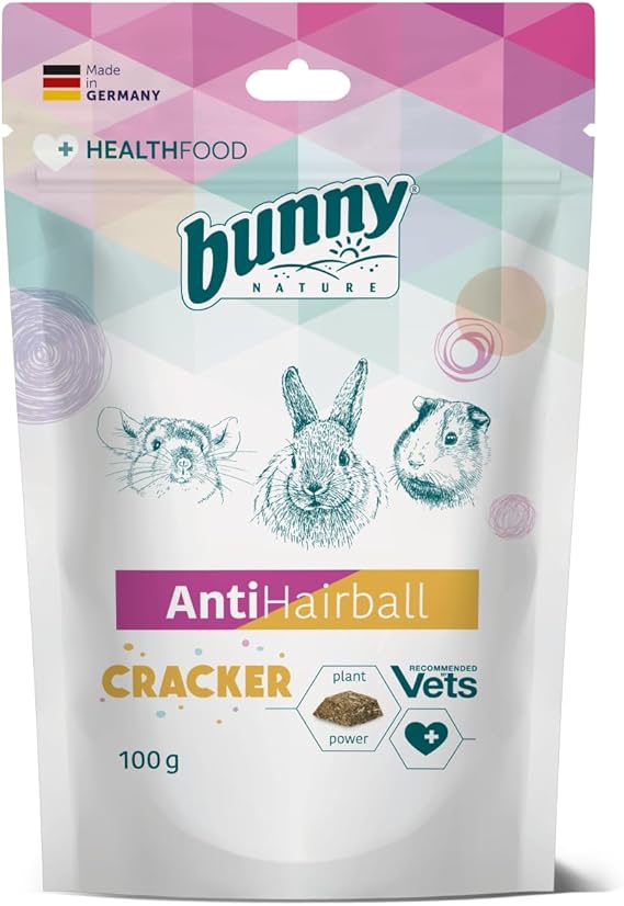 El Suplemento Antihairball Cracker de Bunny es la solución ideal para mantener la salud de tu conejo enano, cobaya o chinchilla.