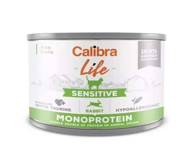 Calibra Cat Life Lata Sensitive con Conejo es un alimento húmedo de alta calidad, creado para gatos adultos con digestión sensibles.