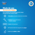 Termómetro digital con punta rígida. Apto para medir la temperatura de adultos y niños.