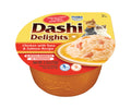 **Churu Dashi Delights Pollo con Atún y Salmón** es un alimento húmedo de alta calidad para gatos, presentado en seis prácticos sobres de 70 g.