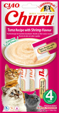 Churu - Receta Atún con Sabor Camarón es un delicioso snack líquido para gatos, natural y bajo en calorías.