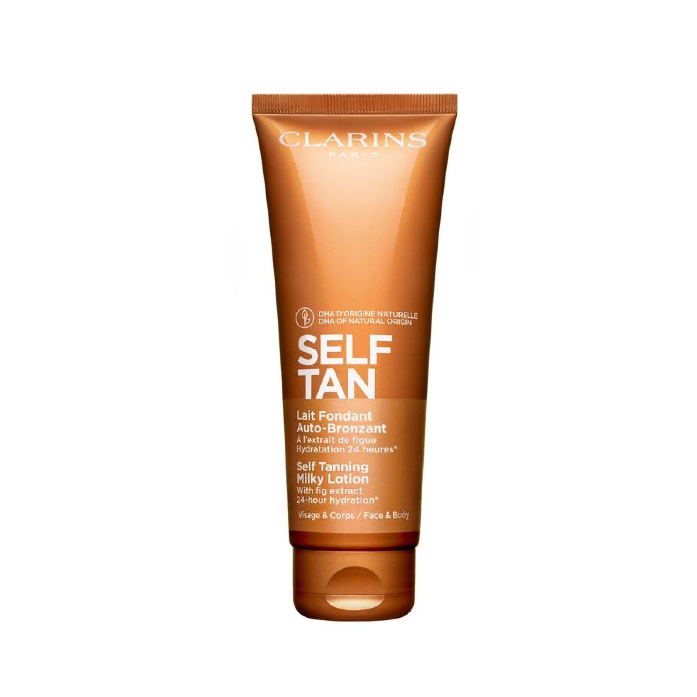 Descubre la Leche Autobronceadora Self Tan de CLARINS: un tratamiento 2 en 1 que broncea e hidrata, dejando tu piel suave y con un tono dorado natural.