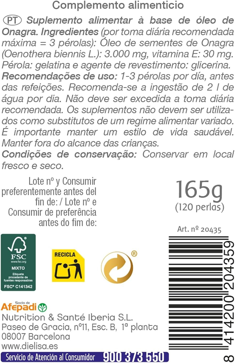 Complemento alimenticio a base de aceite de Onagra, rico en ácidos poliinsaturados y vitamina E.