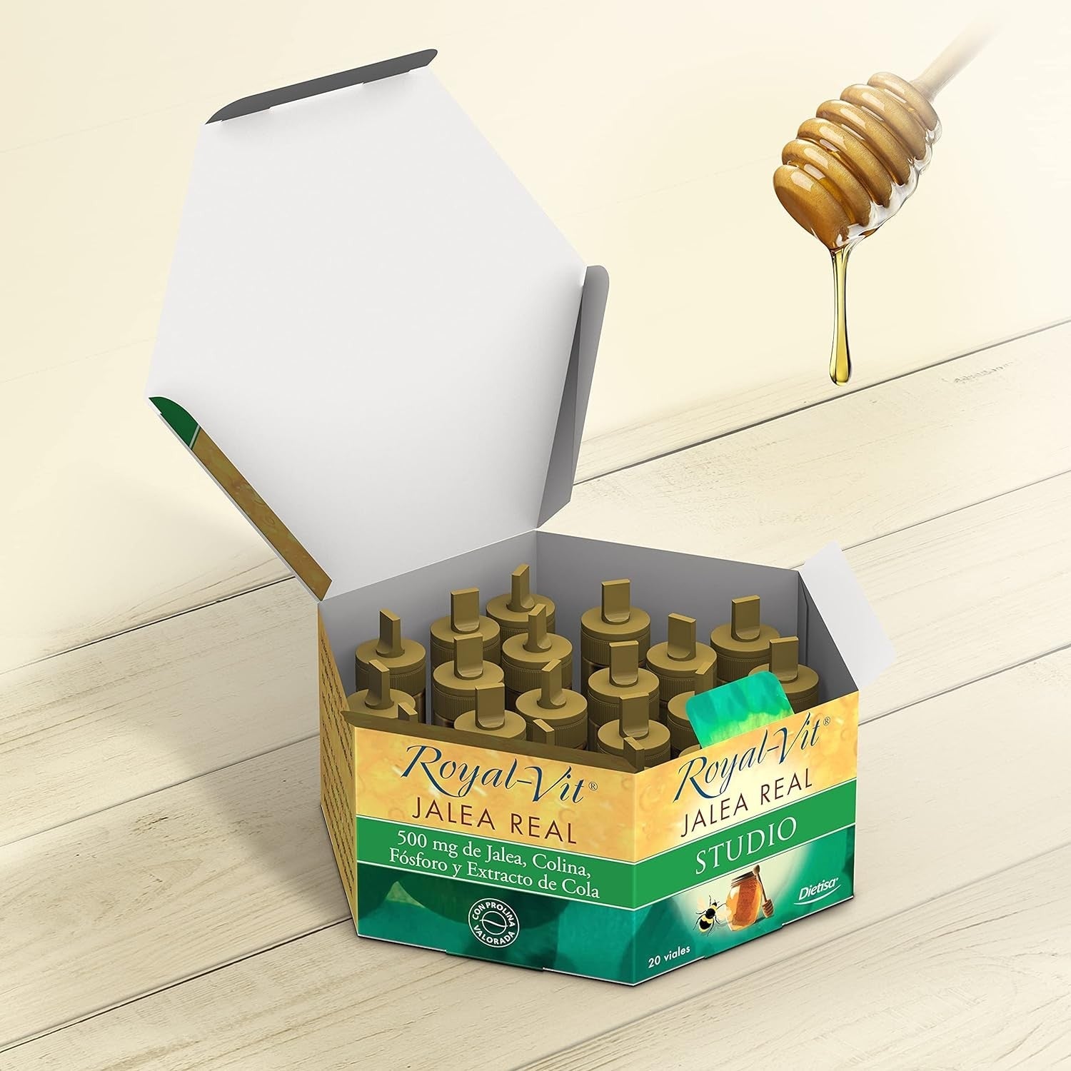 Dietisa Royal Vit Studio 20 Viales, complemento alimenticio a base de jalea real y ingredientes que mejoran las capacidades mentales.