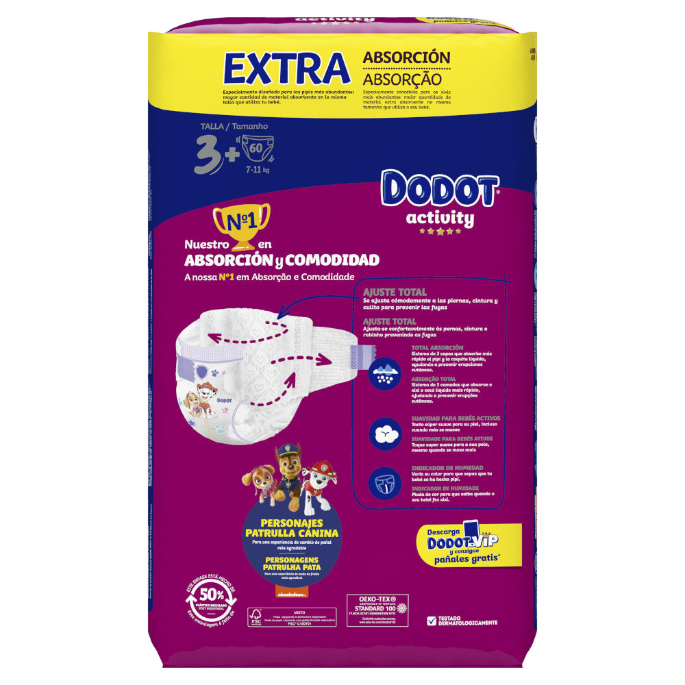 Dodot Activity Extra Jumbo Pack Talla 3+ (60 uds)