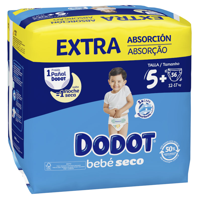 DODOT Bebé Seco Extra Jumbo Pack Talla 5+ (56 uds)